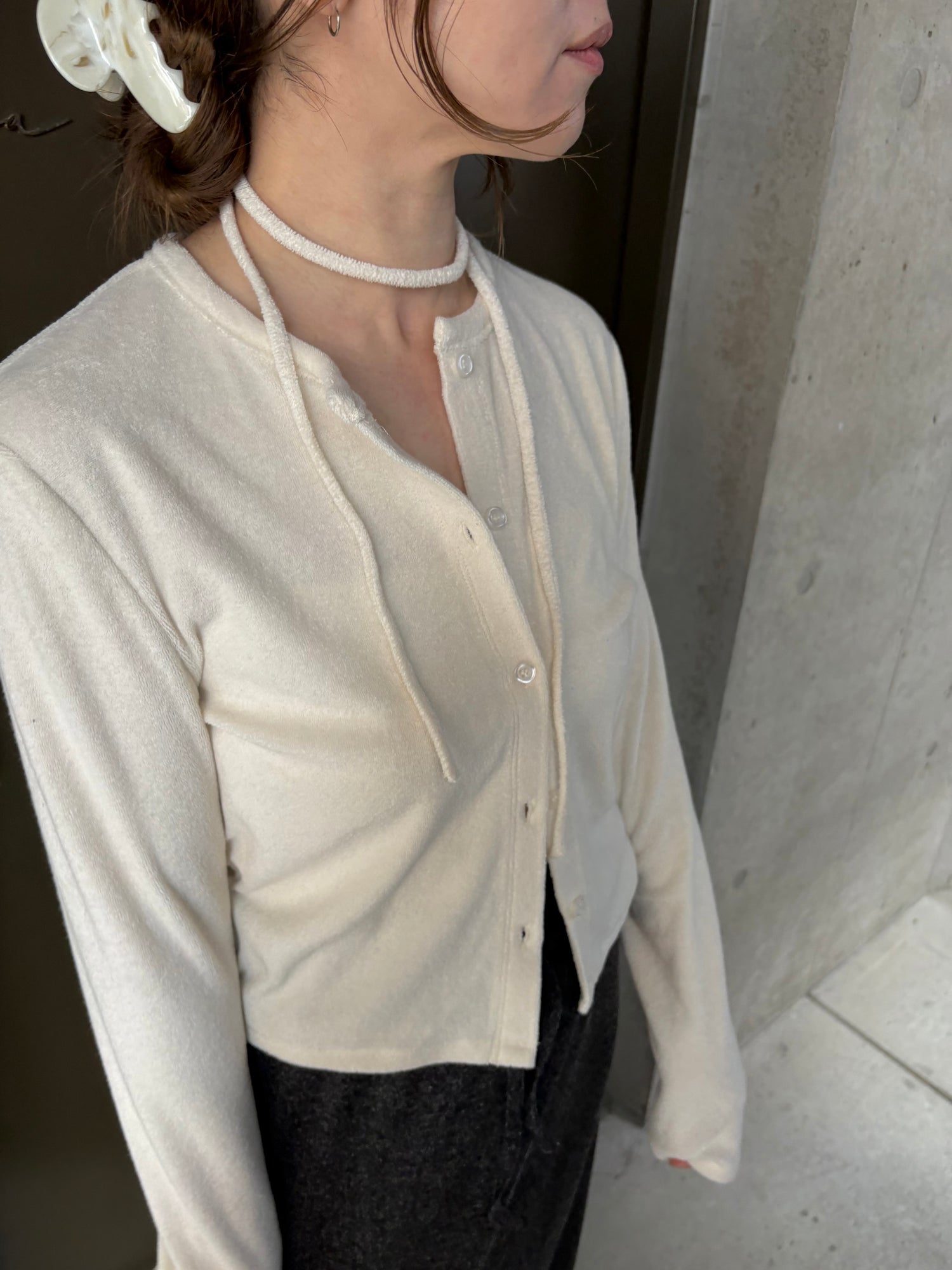 リゾートをイメージして作ったチョーカーとセットになったカーディガントップス。