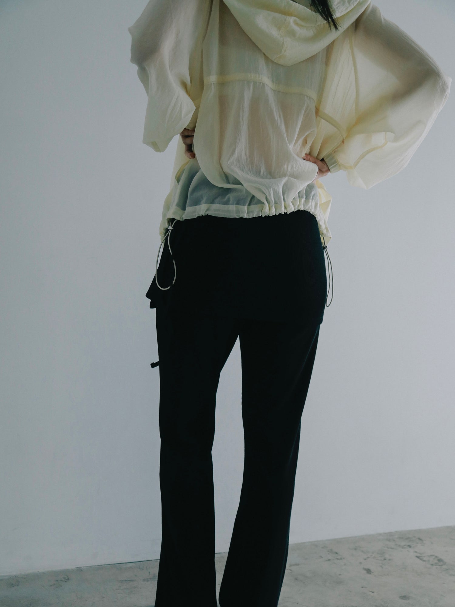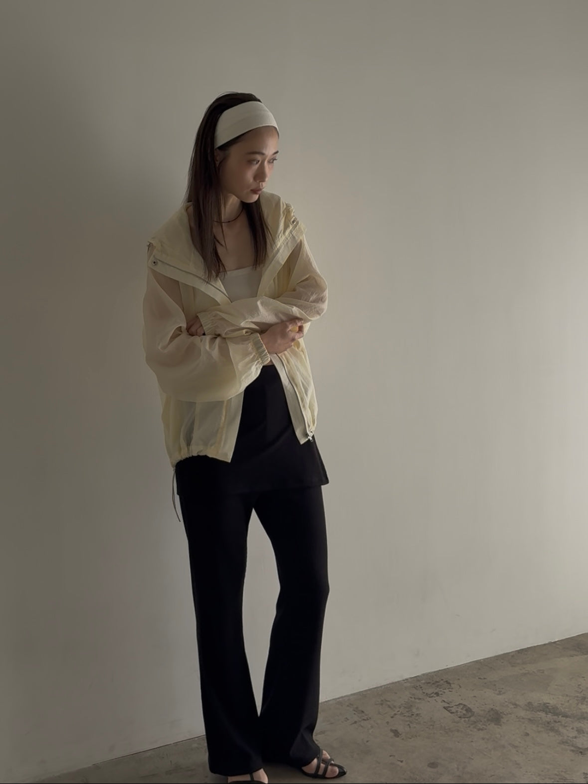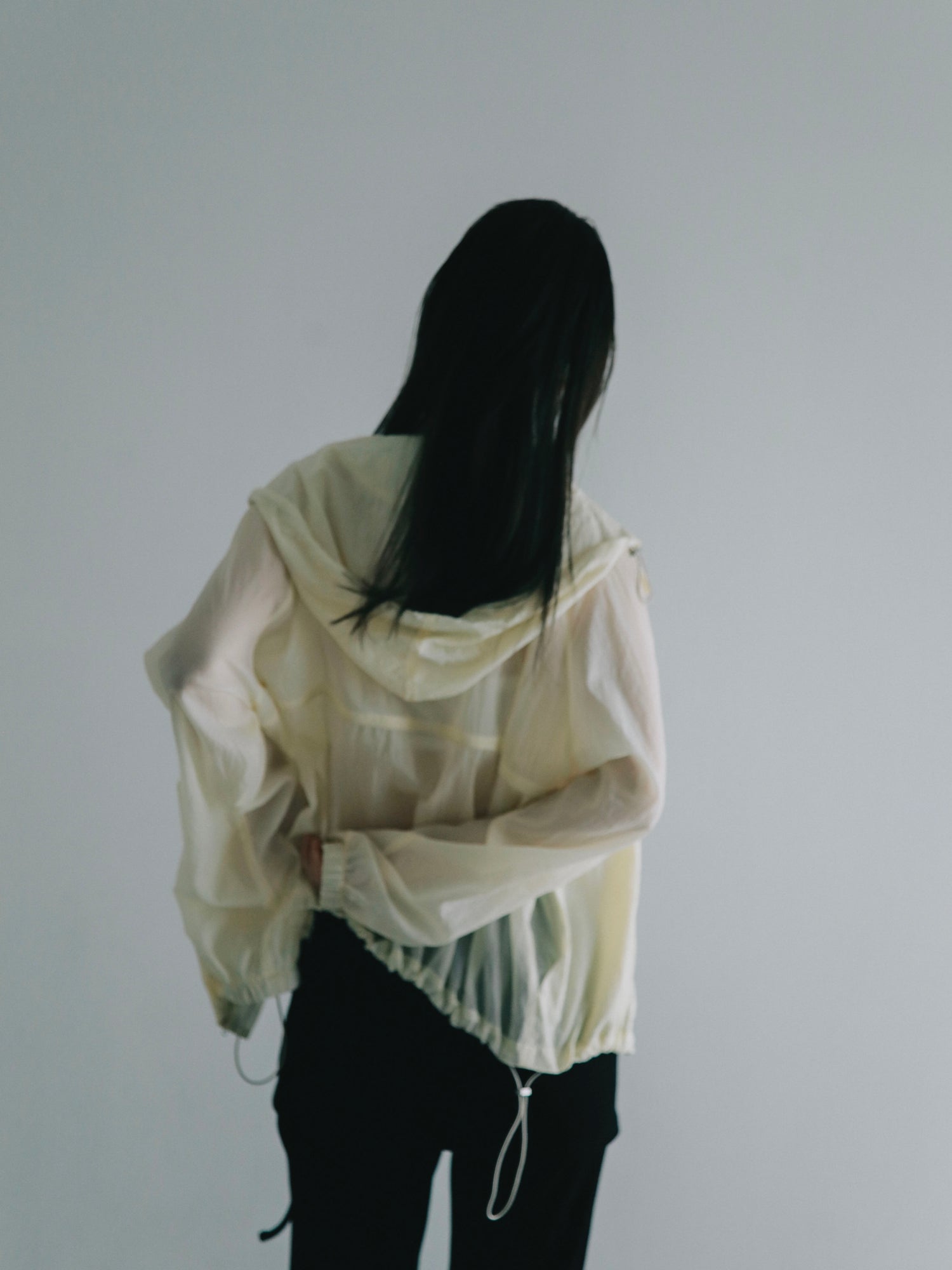シーズンレスで活躍してくれるアノラックパーカー。スポーティになりがちなパーカーもシアー素材で女性らしさをプラス。ドローコードでブラウジング出来るので低身長の方やあらゆる体型の方にご着用頂けます。アウトドアやレジャーにも着れる可愛いパーカーが欲しい!とう言うお声を多く頂き作りました。ボトムも選ばずコーデしやすいのも魅力。