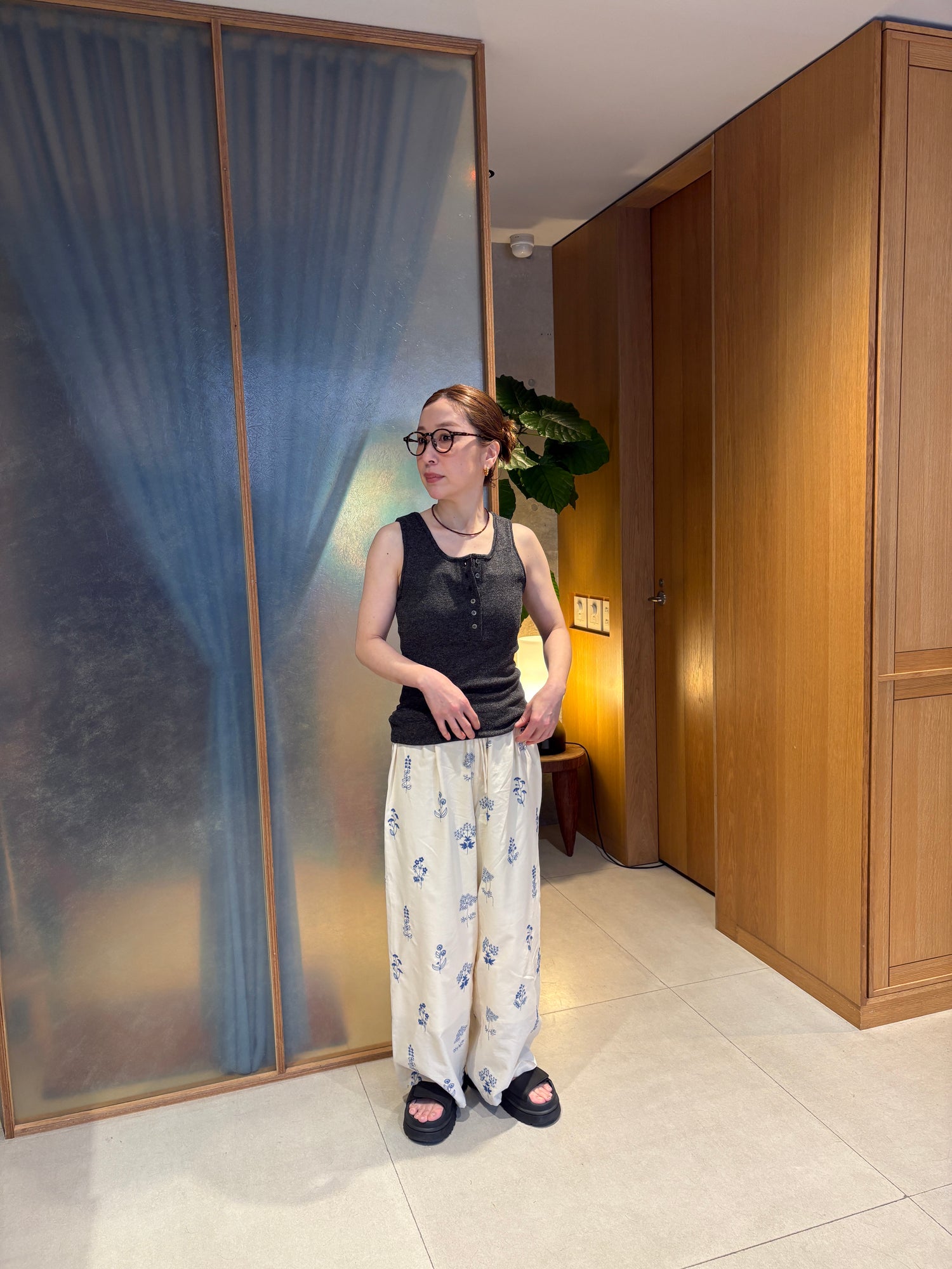 刺繍がヴィンテージライクなフラワーパンツ。シンプルなスタイルにプラスするだけで、コーディネートの鮮度をアップしてくれるアイテムです。 ストレスフリーな穿き心地が叶うオールゴム仕様は夏にぴったり。扱いやすい素材も魅力です。