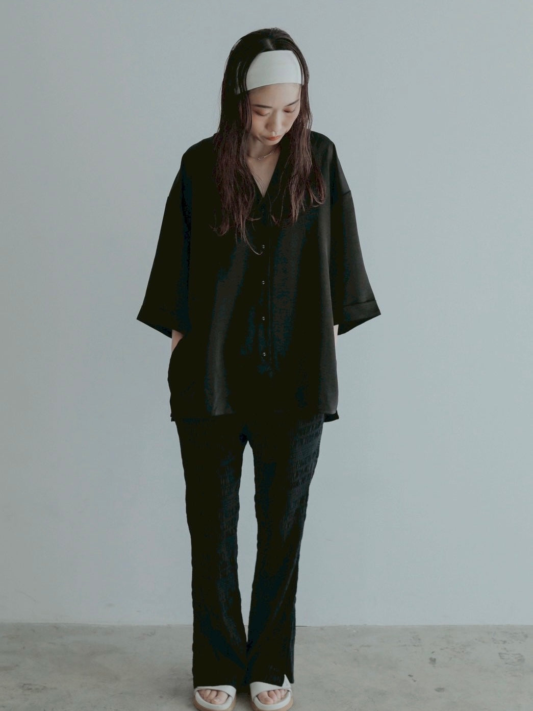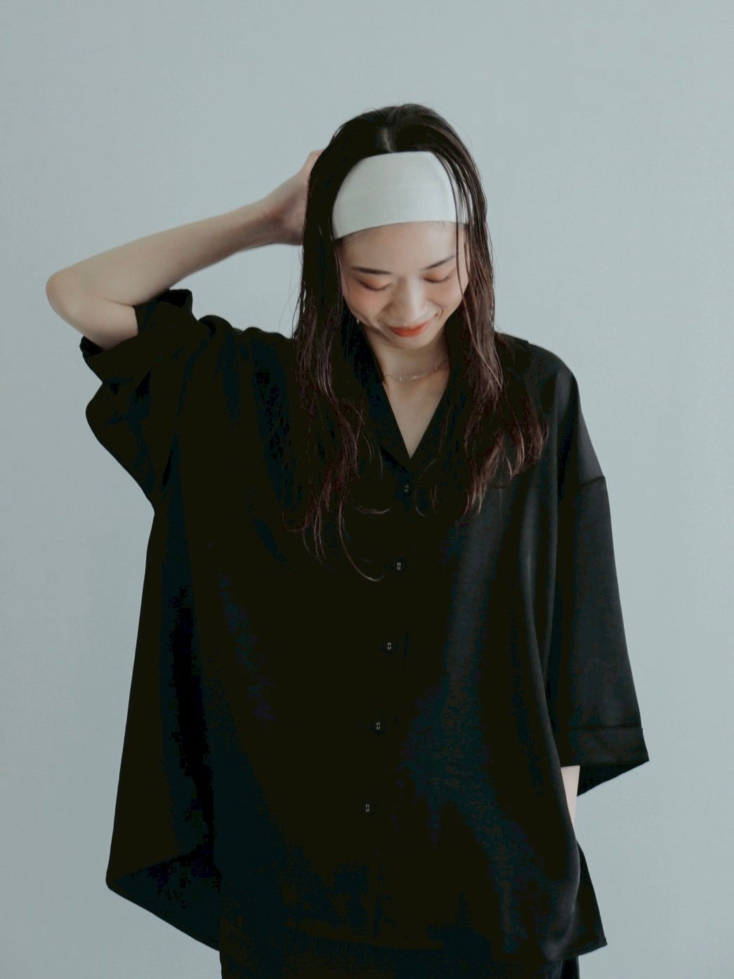シルクのような肌触りが心地よいサテンシャツ。程よい厚みありポリエステルなのでお手入れも簡単で洗濯機でのお洗濯可能です。