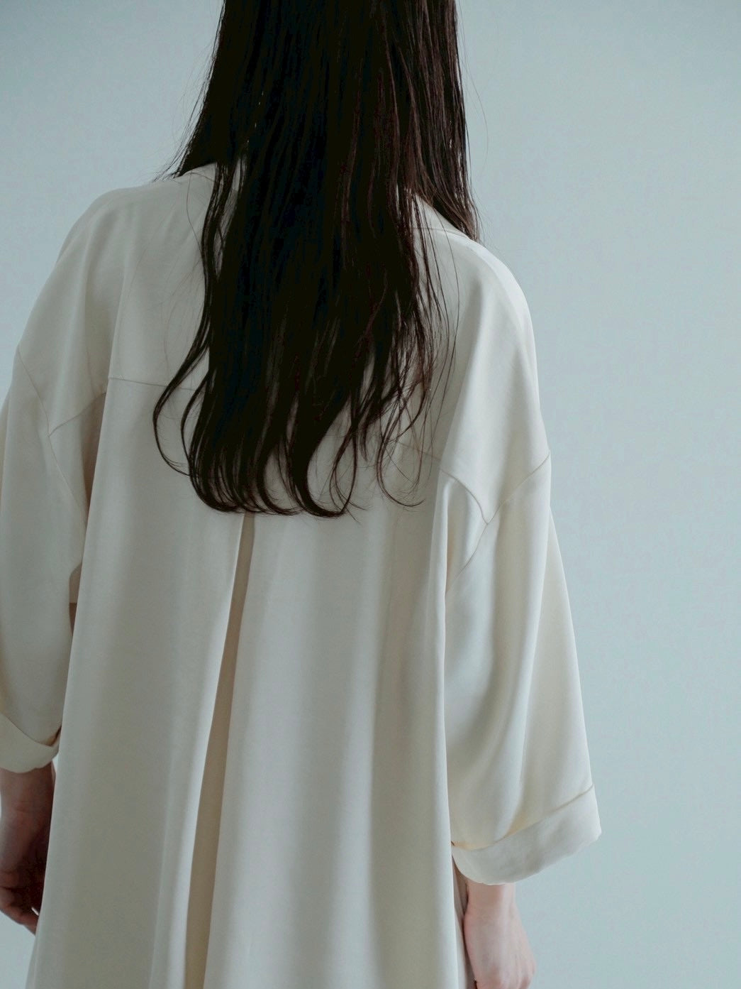 シャツとして1枚で着用はもちろん、羽織としてサラッと着てもらうのもオススメ。前後差を作り前はすっきり、後ろはヒップラインの隠れる丈が嬉しいポイント。同素材のスカートと着用するとセットアップになります。