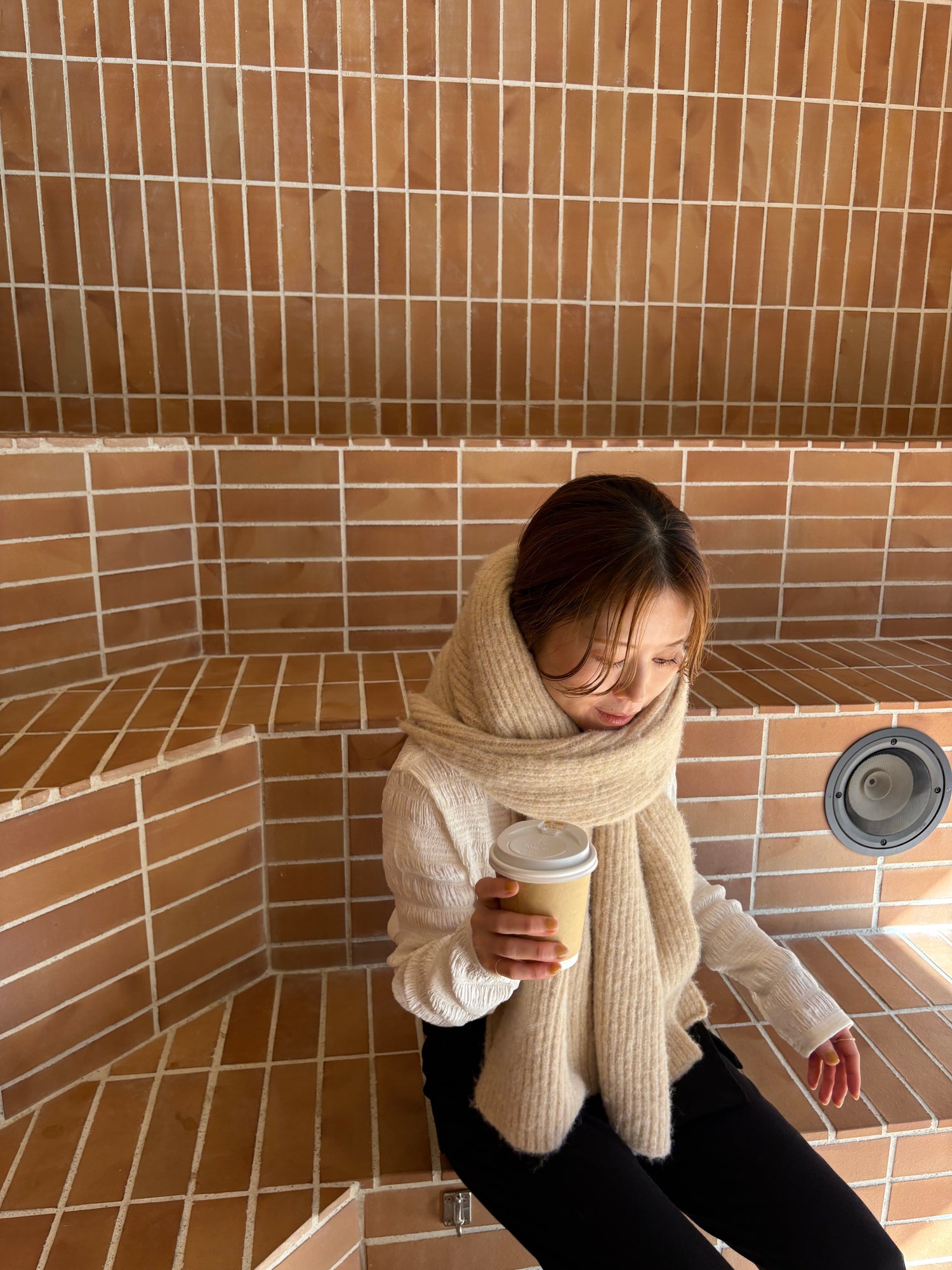 オリジナルカラーで編み上げたニットマフラー。色々な巻き方ができ、いつものコーディネートが一気に華やかな印象に。ふわふわでチクチクしない素材もポイント。ボリュームがあり厚みがしっかりあるので防寒にもぴったりのアイテムです。